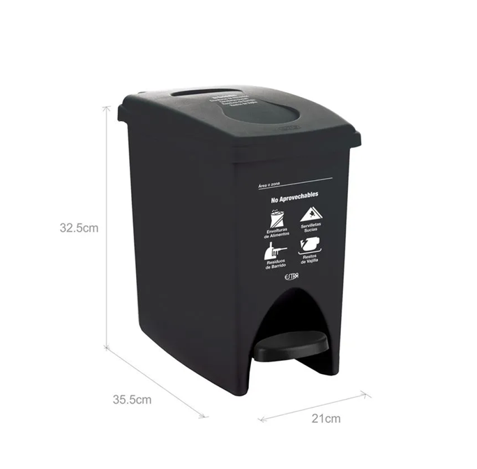 Una caneca de 10 litros con tapa de pedal color a elección en el menu de color
